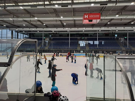 Einige Kids und Teenager hatten zu Beginn noch etwas Respekt vor der frisch polierten Eislaufbahn. Andere konnten es gar nicht abwarten, bis die Schnürsenkel endlich durch sämtliche Ösen und Haken gezwirbelt waren.